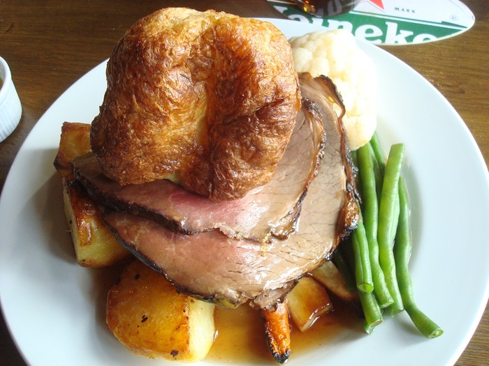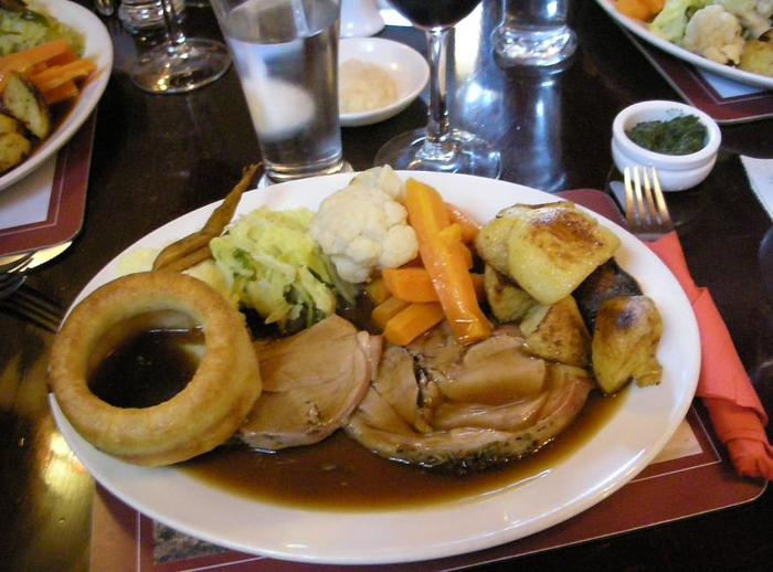 それにしてもヨークシャー・プディングって、ちょっと見は「嘘だろ!?」と思うほど巨大ですよね。でも中は空洞に近いほど膨らませてあるんです。これにグレイヴィー・ソースや肉・野菜から染み出た汁気を吸収させて余すところなく食べる、お祖母ちゃんの知恵袋な存在。^^