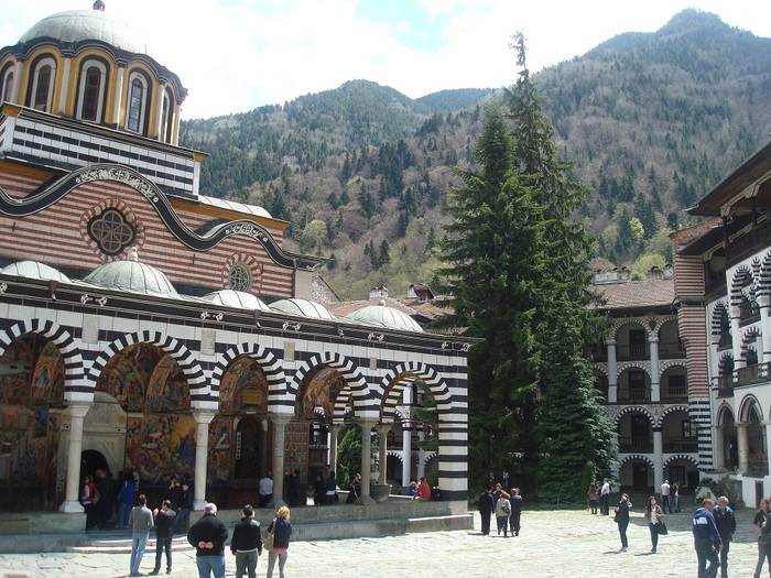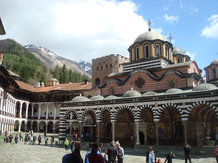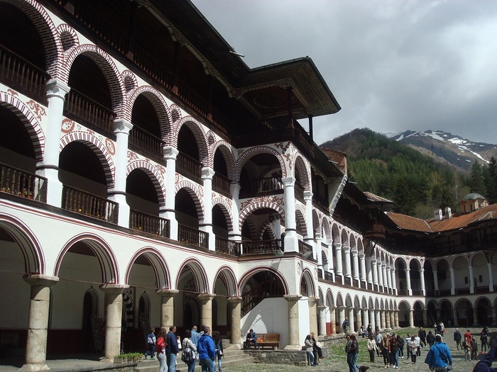 ソフィアから南に65kmほど・・・車で約1時間ちょっとくらいの、リラ山脈の中!という立地。さすがブルガリア正教の総本山的な僧院、背景が素晴らしいですよね~。