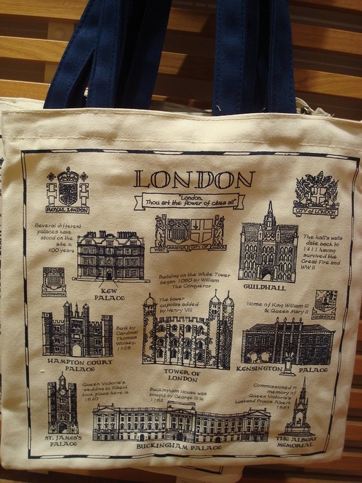 ベタになりがちなロンドン柄のエコバッグも、これくらい抑えたシンプルな色合いとデザインだったら、結構テライなく使えそうです。