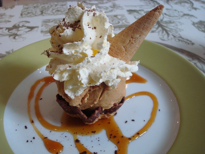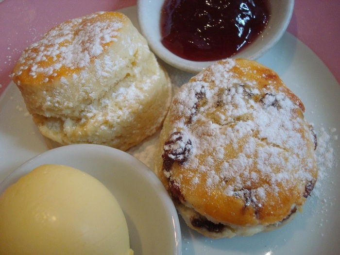 それにスコーン2種(プレーン&フルーツ入り)と、クロッテッド・クリームに苺ジャム。お茶は数種から選べるので、「ロイヤル・ブレンド」を注文して・・・この後に、ミニ・アイスクリーム・サンデーが続きます!