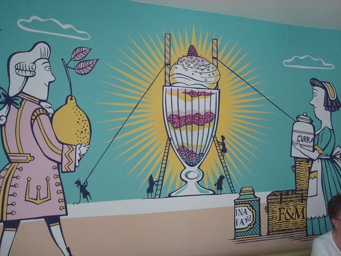 パステル・カラーで統一されたインテリア。英国王室御用達のお店というのも誇りだから、メニューや壁の一部に、王室紋章キャラのライオン&ユニコーンも可愛らしく描かれています。^^ アイスクリームがメインだけど、他にもケーキや軽食を供していて、正式名称はシンプルに「ザ・パーラー」。