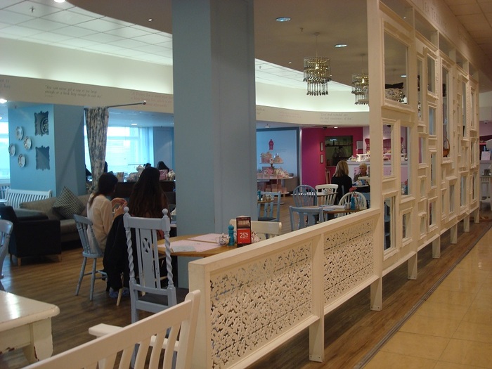 つい今しがたまで人込みに揉まれていた大通りの喧騒が、ウソみたいな別空間です。でも実はここ、百貨店「ハウス・オヴ・フレイザー」の5階、子供服やインテリア用品のフロアー。つまりデパート最上階の食堂的な位置にあるんですけど。