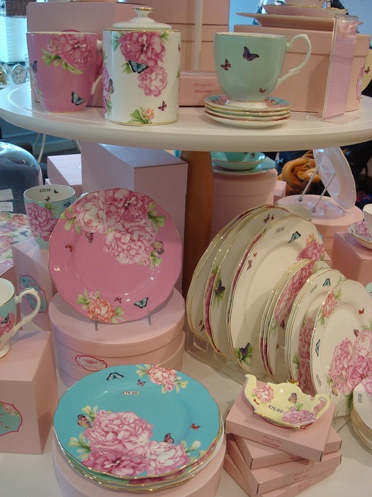 この「ザ・ティー・テラス」、ロイヤル・アルバートの可愛らしい食器で統一しているのも好感度大。パステル・カラーの水玉やレトロちっくな花柄が和みます。