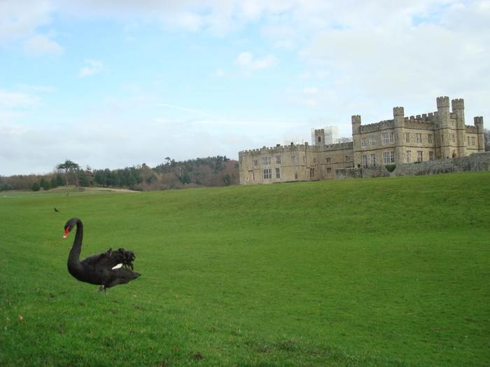 湖のように大きな池に囲まれている城だから、カモやハクチョウなどの水鳥が沢山。それに18世紀にオーストラリアやニュージーランドから連れてきた黒鳥、ブラック・スワンを繁殖・保護してきたので、今ではリーズ城のシンボルにもなっています。