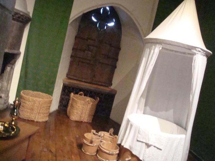 城内見学の通路は、中世の面影を残す古そう~な部屋の数々から始まります。質素と言っていいくらいで、中世の生活様式を垣間見るよう。