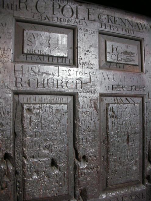木の柱、壁、机のいたる所に、数百年前の少年たちが自分の名前やメッセージをナイフで彫ってあります。遥か遠い昔の少年たちは、どんな夢や希望を抱いてここで学んでいたのかな・・・?