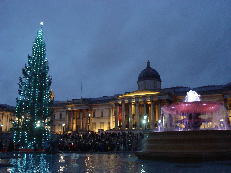 高々と聳えるネルソン提督像&それを囲む4頭のライオンと、美術館「ナショナル・ギャラリー」の間に、そのモミの木は設置されて・・・素朴と言っていいほどシンプルな飾り付けが、とてもクラシカルで厳かな印象ですよね!