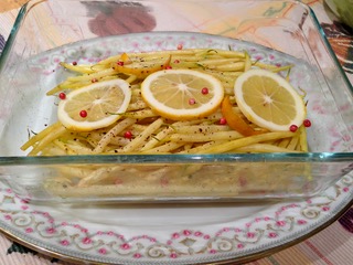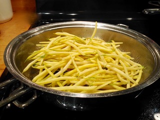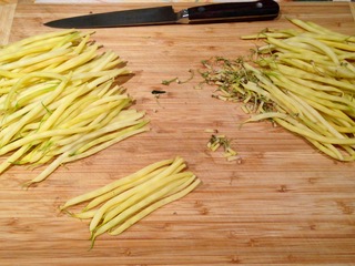 前回はサヤから取って乾燥させた豆(豆まきの豆)だったけど、サヤ付きインゲン豆について、"カリフォルニア料理" と言えばアリスウォータースさんだ。 彼女がUCバークレーのフランス文学科の学生だった時にフランスに行きそこで目の当たりにしたフランスの食生活に触発されオープンさせたのがレストラン『シェパニーズ(Che Panisse)』 フレンチのテクニックで地元の食材をなるべく手をかけずに提供している。 そのフランス人が好きな豆の食べ方のヒトツが、細いインゲンをサヤごと調理して食べる "アリコ・ベール(Haricot Verls)" フレンチスタイル、フレンチビーンズと言ってたりもして、その為に品種改良されたフラジョレ(Flageolet)って細〜〜いビーンズもある。