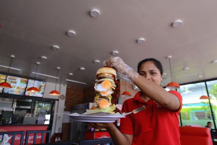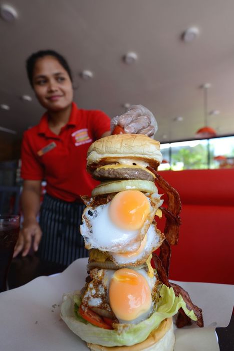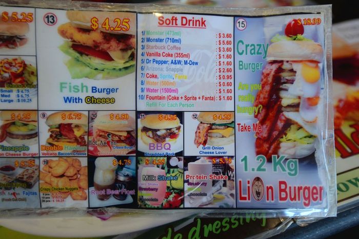 メニューを見るとヤバいのあるよ。「クレイジーバーガー$18.99」