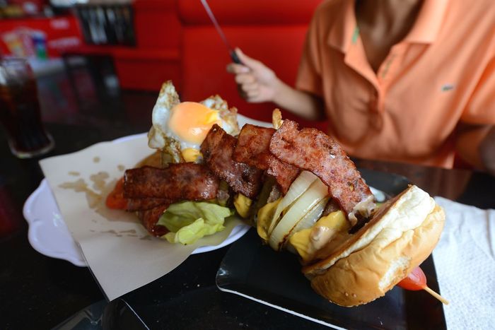 なんだこのボリュームは・・・。ヤバくないか。目玉焼き3つ、肉とベーコン6つなどが入ってます。