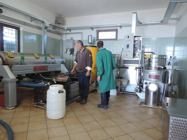 ↑ 朝食を終えると、1ヶ所目の訪問です。オートバイでゾロゾロと近隣のオリーブ農家まで移動します。この農家で作るエキストラバージンオリーブオイルは、欧州連合統一の保護原産地呼称 D.O.P. Sabina(保護指定原産地表示-サビーナ産)に認定されています。