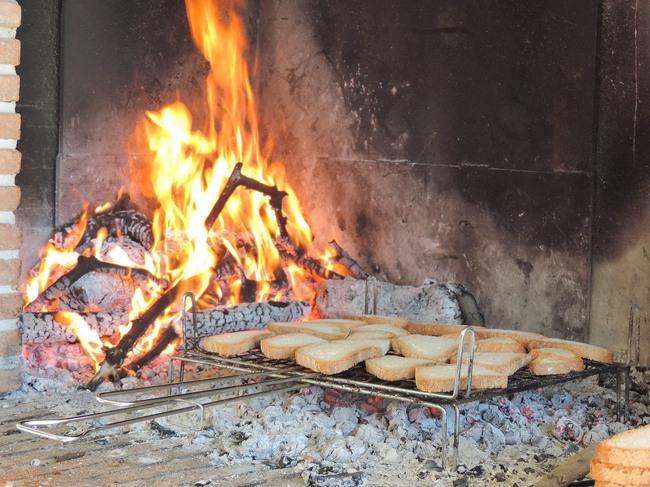 この焼きたてのカリカリのパンの上に、エキストラバージンオリーブオイルぐるっと回しがけし、少々お塩をかければ出来上がり。何ておいしいのでしょう!