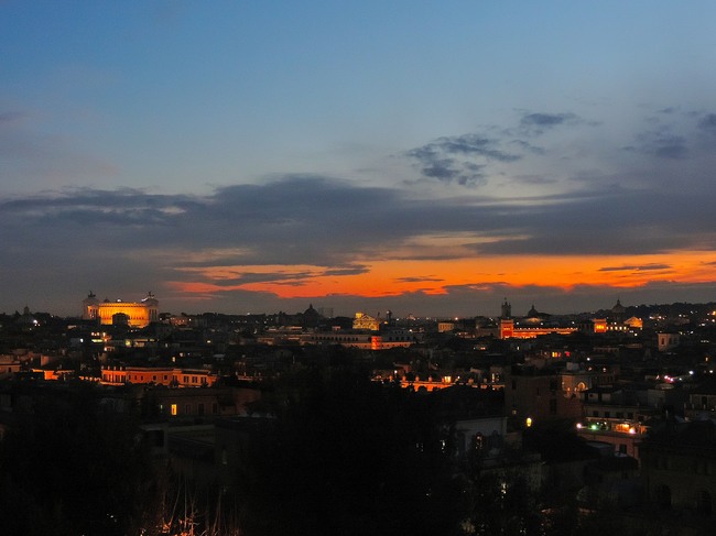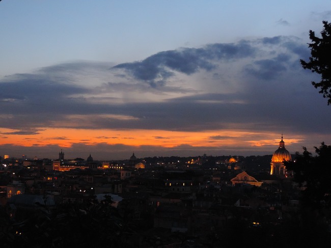 今日の夕方は、燃えるようなオレンジ色をしたローマの美しい夕暮れを見ることができました。