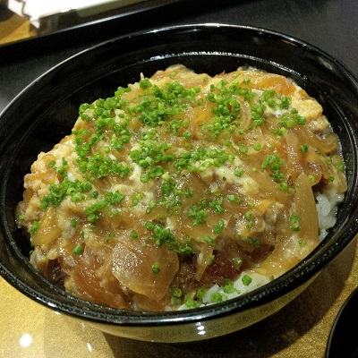 (かつ丼と見た目一緒ですが・・・)親子丼セット、地鶏なのでプリップリッ