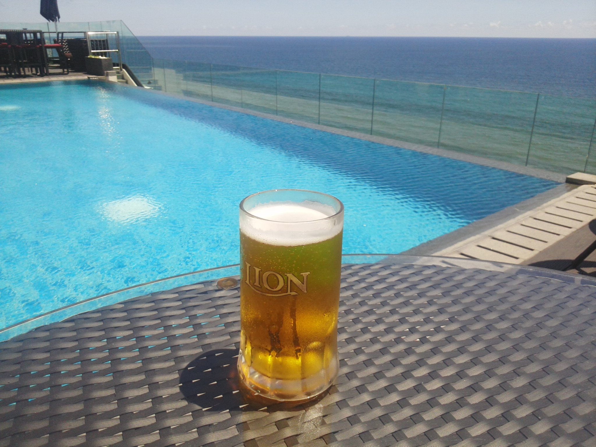 海を見ながら飲むライオンラガーの生ビールもこれまたイケてます