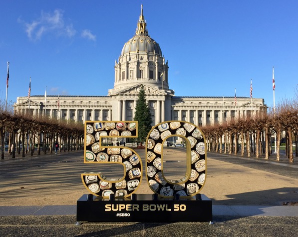 サンフランシスコから車で南に一時間半ほどの街、サンタクララのリーバイス・スタジアム(Levi's Staudium)で開催されるスーパーボール。 今年は節目の50回記念大会。 お膝元の49ersは関係ないけどベイエリアはスーパーボール景気を期待して妙な盛り上がりを見せているんです。