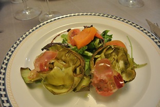 <順番が前後しますが、前菜のアーティチョークのサラダとデザート>