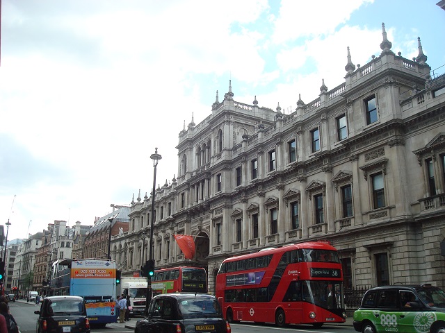 やがて右手には、この立派な建物「ロイヤル・アカデミー・オヴ・アーツ」が見えてきます。ロンドンの主要美術館は入場無料の所が多くて、ここも常設展示ならばタダで観る事ができますよ。