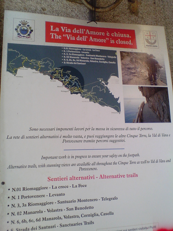 実は、昨年の秋に、愛犬ピッパとチンクエ・テッレに行ってきたのですが、ブログで書かなかったのは愛の小道Via dell' Amore が閉鎖中だったからなんです。