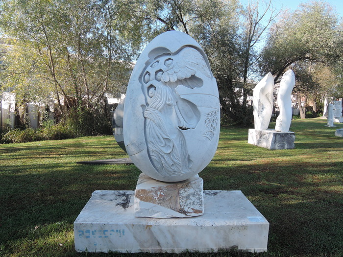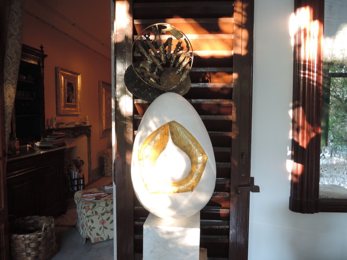 そして、現代彫刻家で有名なピストイア出身のジュゼッペ・バルトロッツィ、クララ・テージご夫婦の作品を見せていただきました。彼らの作品の基本のテーマは、"月"と、"卵の形"、彫刻をするときにはいつも頭の中にポエジア(詩)を思い浮かべながら掘るそうです。大変な芸術家肌の方でしたが、とても気さくで慎ましい方でした。ジュゼッペ氏は1970、1971年に日本へ滞在されたことがあるとおっしゃっていました。