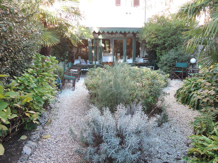 その日の夕食は当日泊まったホテルの中のお庭付レストラン、アットフォームな雰囲気で、居心地のよいパーティーでした。つい皆さんの話に集中し、またジュゼッペバルトロッツィ氏と席が近くて会話に夢中になりました。