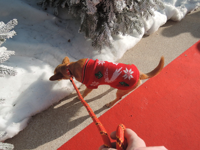 真っ白なモミの木とレッドカーペット