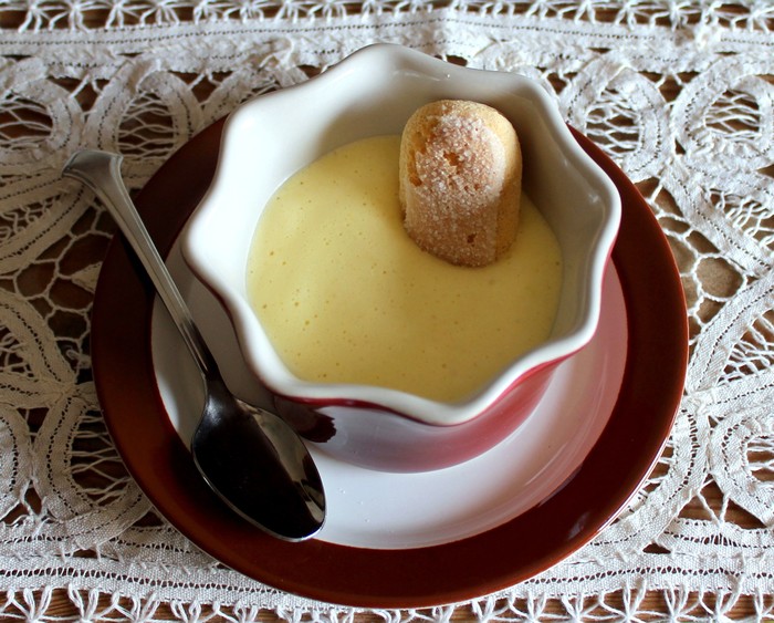 ザバイオーネは、イタリアピエモンテ州の超簡単な卵のデザートで、砂糖と、卵(黄身のみ)を混ぜて温め、お好みでマルサラ酒やシェリー酒、ホワイトワインなどを加えたカスタードクリームのことです。