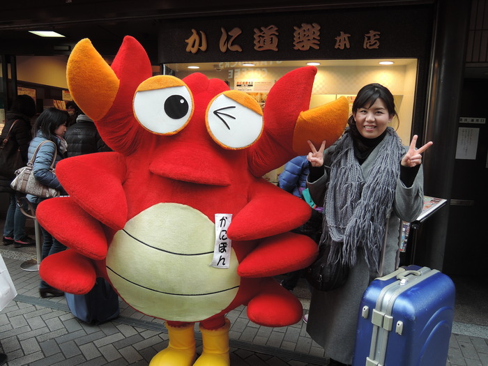ミナミのかに道楽本店前、かにぽんとツーショット!!!