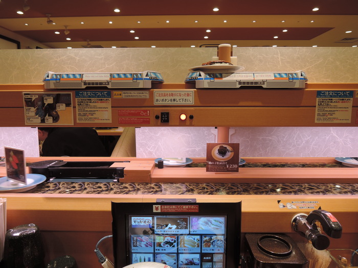 特急レールが私の前まで運んでくれましたが、注文したお皿を取ってからボタンを押すところを先にボタンを押してしまい、また特急レールがお皿ごと戻ってしまいました。。。