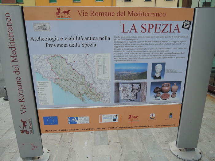 これも同じく駅を出たところにラ・スぺツィア県の簡単な考古学について書いてある掲示板があります。