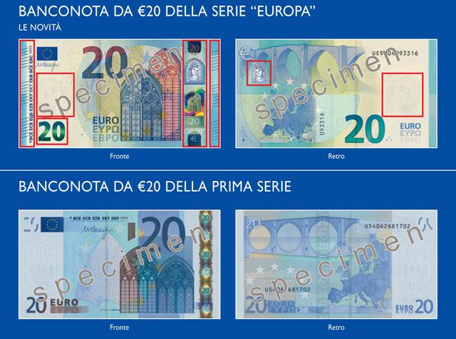 なぜならば、噂では、はじめに発行された20ユーロの偽札が世界中に出回ってしまったからです。