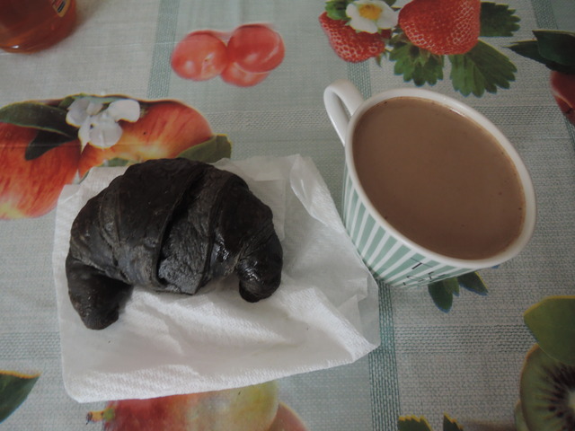 日本でも数年前から出回っているようですが、イタリアにも最近スーパーや、バールなどで、黒いパンやコルネットが並ぶようになりました。。。