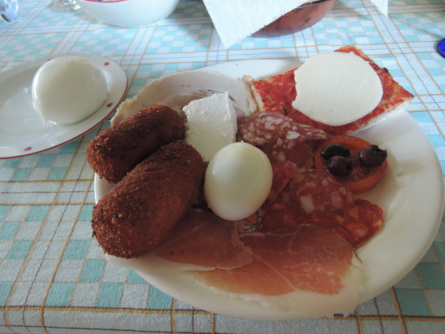 これが次の日の26日、友人宅で出されたアンティパスト、あつあつコロッケや水牛モッツアレラチーズも新鮮で美味しかった。。。