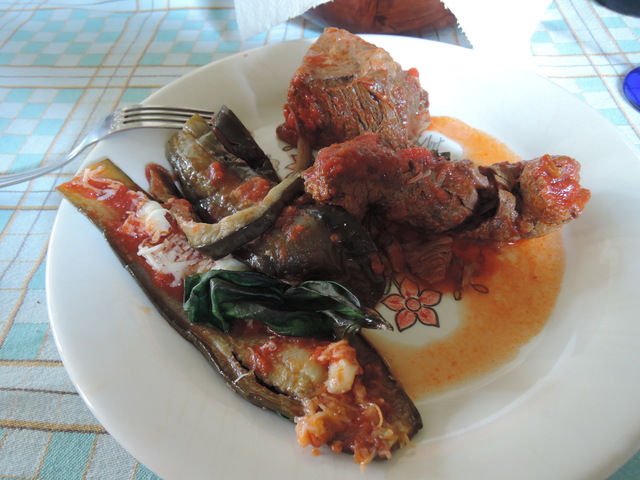 セコンドピアット(2種類のお肉の煮込みと、ナスのパルミジャーナ入り)