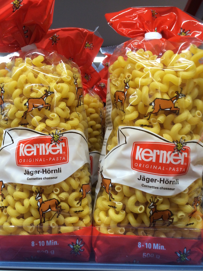スイス名物(?)のひとつであるHörnli(ホーンリ)は、とにかく小さいマカロニ。