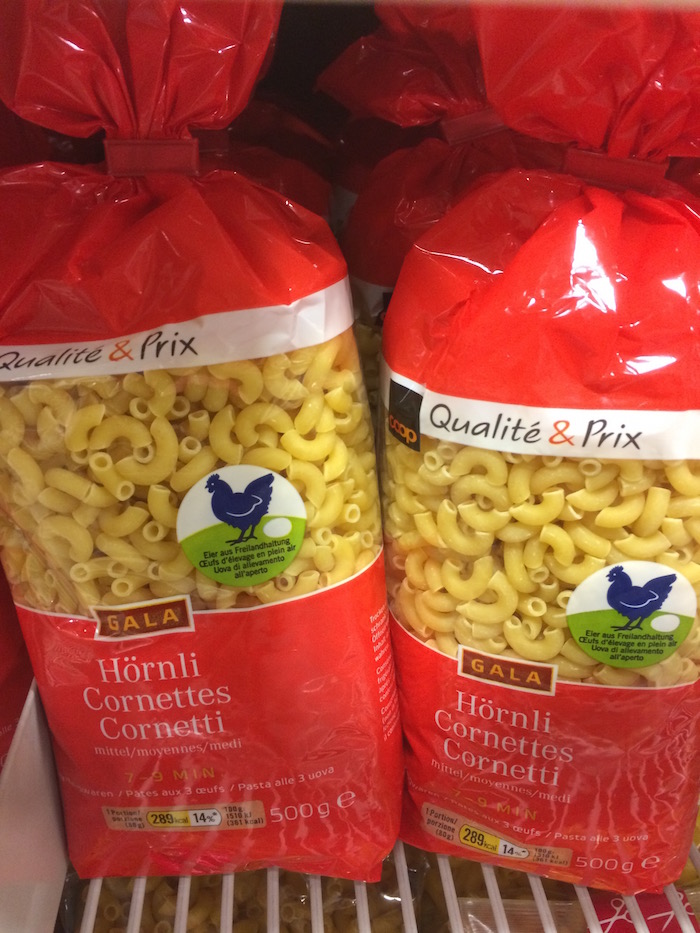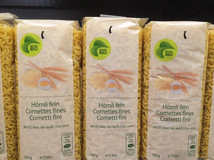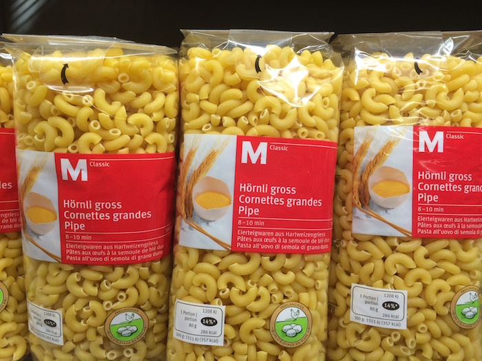 Migro(ミグロ)やCoop(コープ)といった普通のスーパーでも数種類のHörnliが手に入ります。