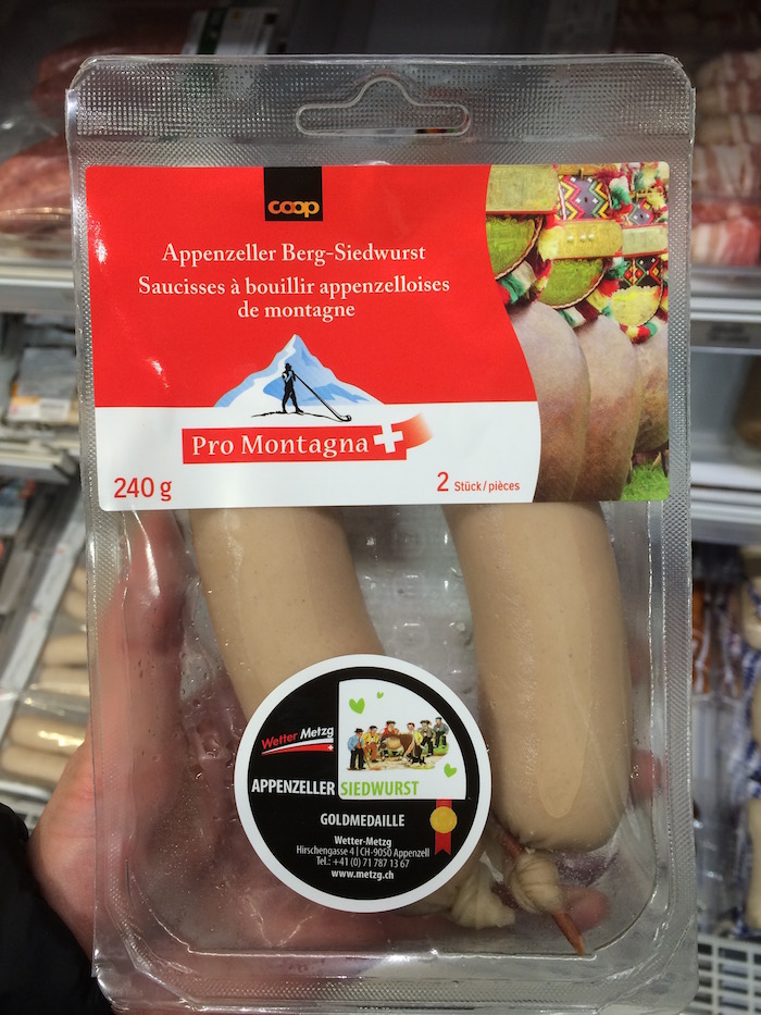 アッペンツェル・インナーローデンとアッペンツェル・アウサーローデン、そしてお隣ザンクト・ガレン周辺の特産品(?)のひとつ、Siedwurst(シートゥヴルスト)。