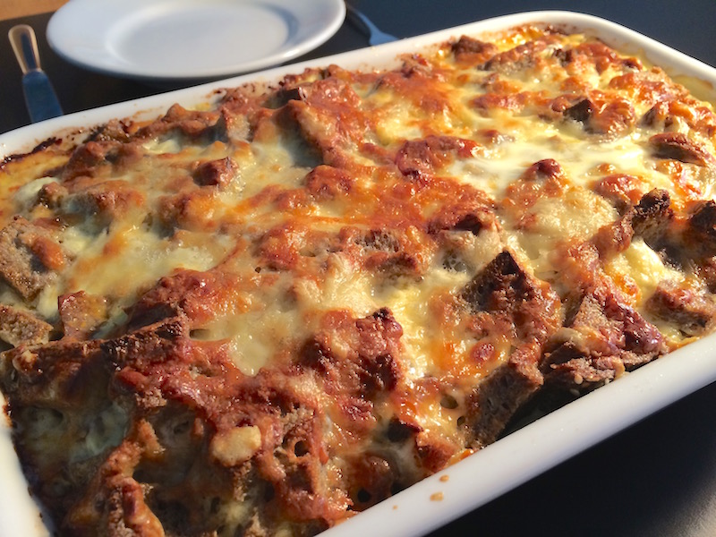 パンとチーズを使った料理、と言うとたいして珍しくもありませんが、ポイントは「農家の人々が、古くなったパンをどうにかして美味しく食べようとしていたら生まれちゃったレシピ」と言っても過言ではない、その簡単さです。