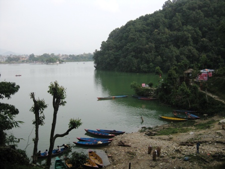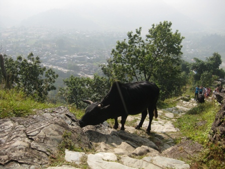 途中、水牛に遭遇したり、振り返ってポカラ市街を眺めたり。