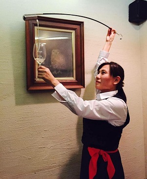 "ベネンシア"を使ってシェリー酒をグラスに注ぐこと)。