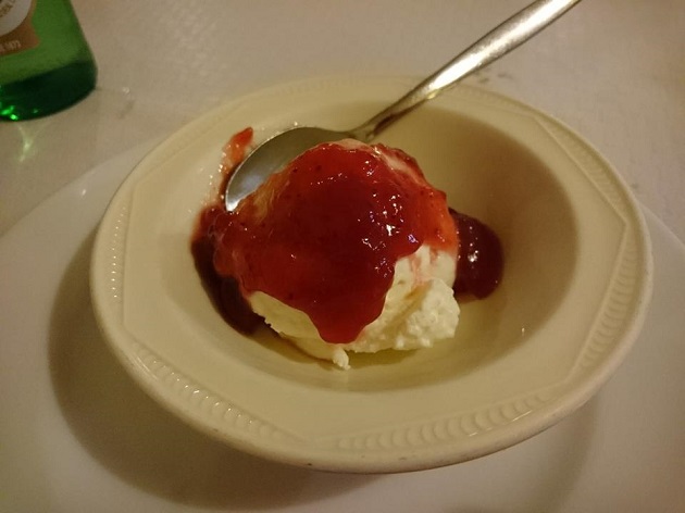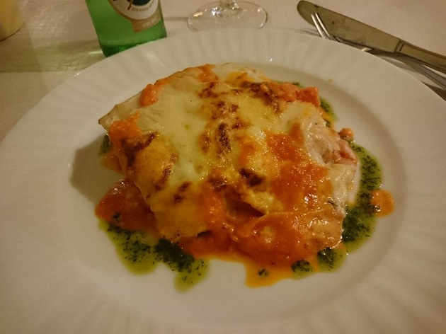 選んだのは、タブレと野菜のラザニア、スパークリングウォーター、そしてデザートには山羊チーズのムース。