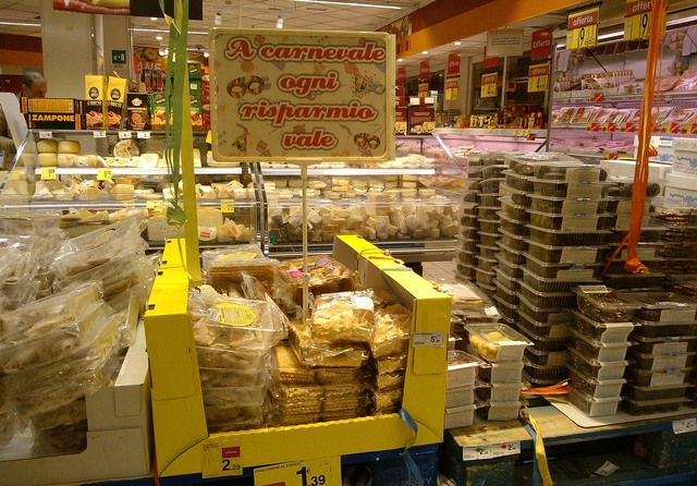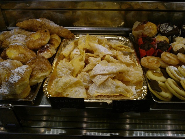 最後に、このイベントを見に行くのを忘れてしまったという方の為に、カーニバルのお菓子として最も有名なお菓子をご紹介したいと思います。仮装行列などのイベントは数日間ですぐ終わりますが、食べ物はイタリアでは大きく幅を利かせていますので、まだあちらこちらで見ることが出来ます。