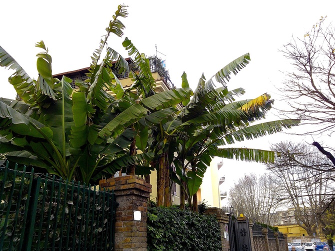 ↑ 霜も降らず、冬も穏やかな気候のローマではバナナも地植えです。