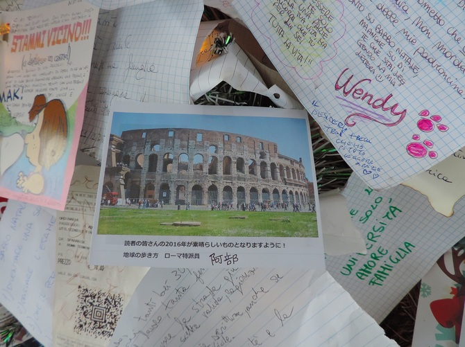 ↑ この中に読者の皆さん全員に宛てたメッセージ(お願い事)があります。さてどこでしょう。ヒントはローマを代表するモニュメントで作ったカードです。