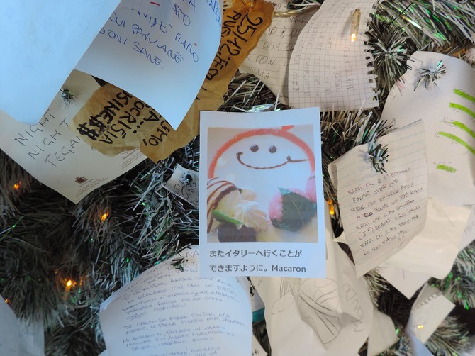 セロハンテープを持ち、クリスマスツリーの周りをグルグルと回りながら手際良くメッセージを貼り付けて行く筆者はまるでプロのスタッフ(?)のようで怪しかったと思います。