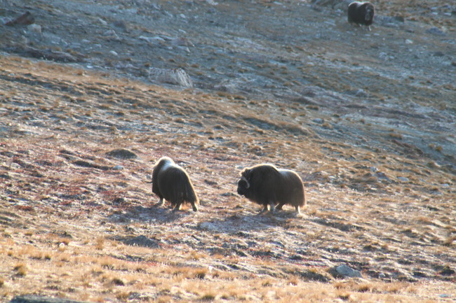 ジャコウウシに静かに近づきます。とっても繊細な動物なのです。