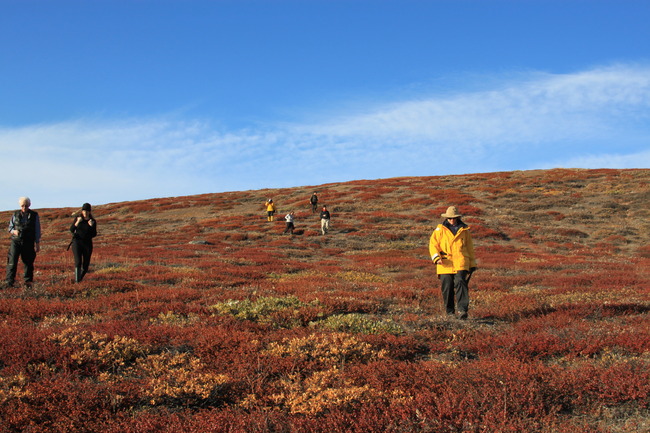 ツンドラ地帯のハイキングです。大地は紅葉していてよくみると