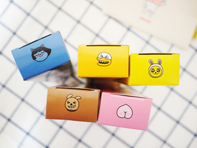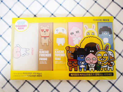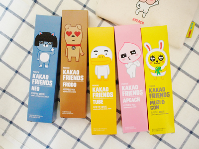 カカオフレンズのキャラクター(右からネオ、フロド、チューブ、アピーチ、ムジ&コン)達です。