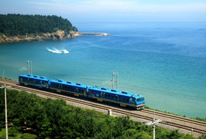 江陵の正東津駅から安仁駅に向かった後、その後三陟市の三陟駅まで海を眺めながら約1時間20分のミニ列車旅行を行うシートレインです。