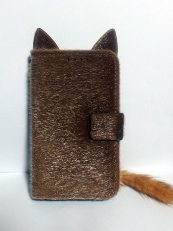 ネコを模っ手帳型スマホケース。耳と尻尾もついてます!